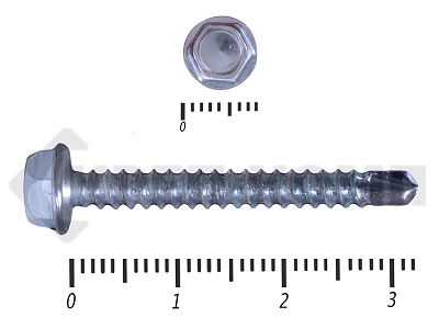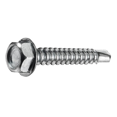 Саморезы кровельные без шайбы имеют шестигранную головку, частую резьбу по всей длине самореза, наконечник сверло. Наличие прессшайбы на основании головки обеспечивает снижение давления на поверхность прикрепляемого листа и предотвращает его деформацию вблизи посадочного места крепежной детали. Эти кровельные саморезы многоразового использования и способны просверливать металл толщиной от 0,9 до 12,7 мм.