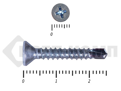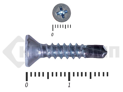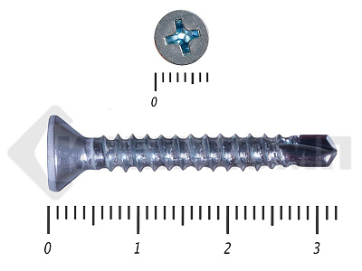 Оцинкованные потайные саморезы со сверлом DIN 7504 P – имеют полную резьбу и сверло на кончике. Потайная головка при вкручивании входит в материал и не выступает на поверхности. Такими саморезами можно закрепить листовые отделочные материалы из пластика, металла, фанеры к металлическим конструкциям. Саморез может высверливать отверстие в углеродистой стали толщиной до 4мм.