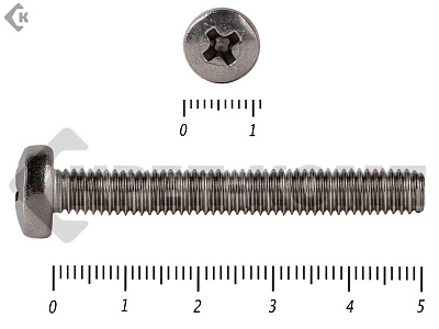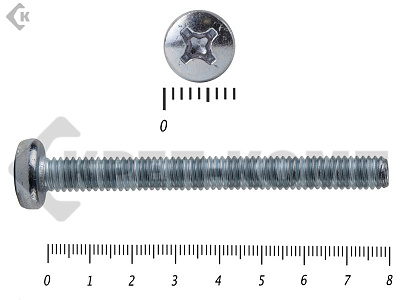 Винт с полукруглой головкой - это стальной стержень с полной метрической резьбой. Существует два варианта исполнения - с прямым шлицем и с крестообразным. Полукруглая головка обеспечивает лёгкий захват простой отверткой.