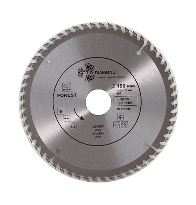 Пильные диски – это оснастка для дисковых и торцовочных пил или стационарных распиловочных станков. Они используются для выполнения продольных и поперечных распилов разных пород древесины, резания пластика и некоторых видов металлов. Угол атаки зубьев подбирается производителями индивидуально, чтобы обеспечить требуемую производительность и качество обработки. За счет высокой скорости вращения и благодаря наличию множества остро заточенных зубьев диски для пил обеспечивают формирование точных и ровных пропилов в обрабатываемом материале.