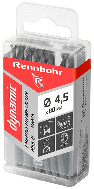 Сверло по металлу 4,5 х 80 мм HSS-G, P6M5 RENNBOHR DYNAMIC PROM ЦХ (20шт)1 508.88 ₽Цена (с НДС) / 75.44 ₽ за шт.