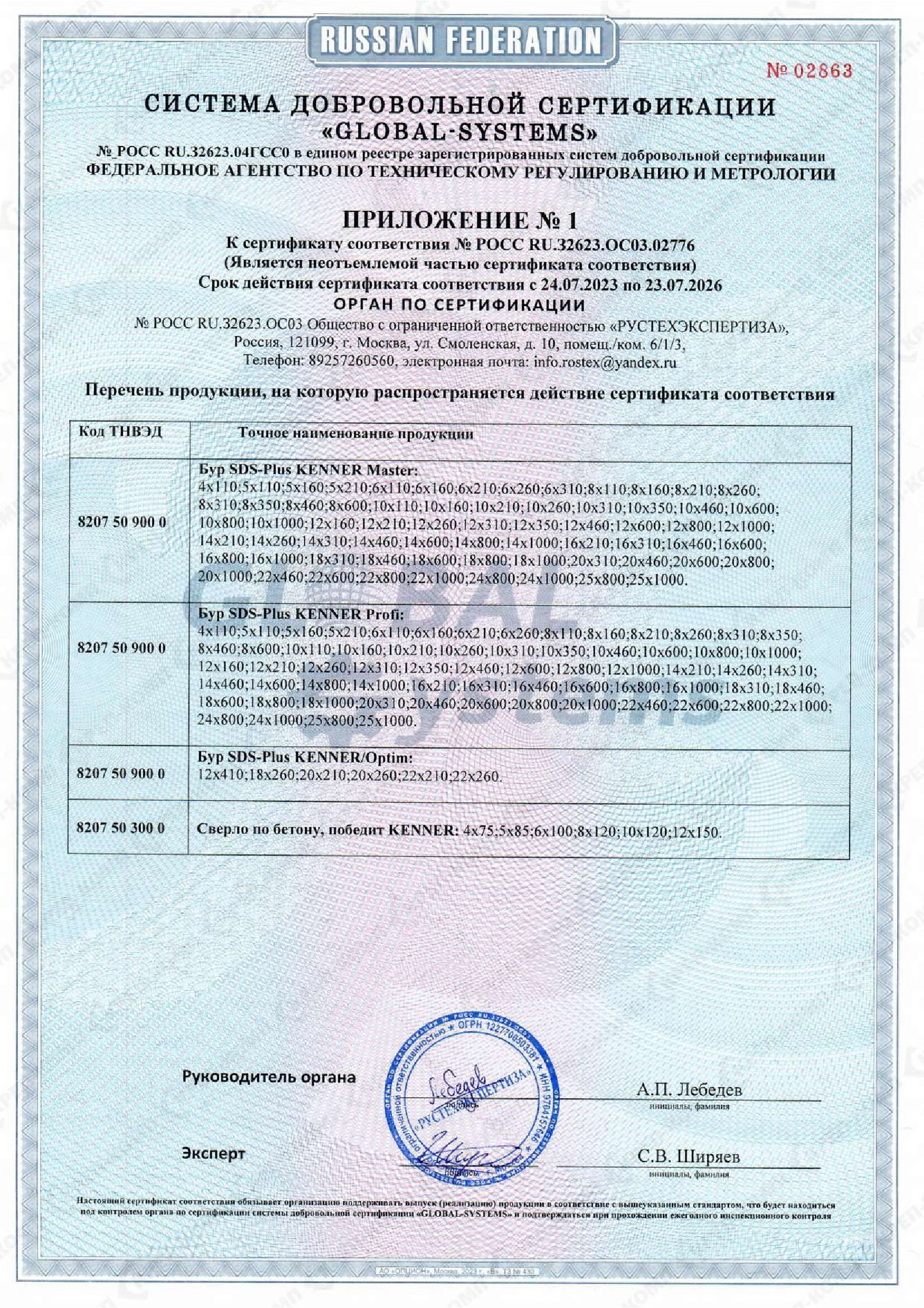 • Сертификат соответствия на буры