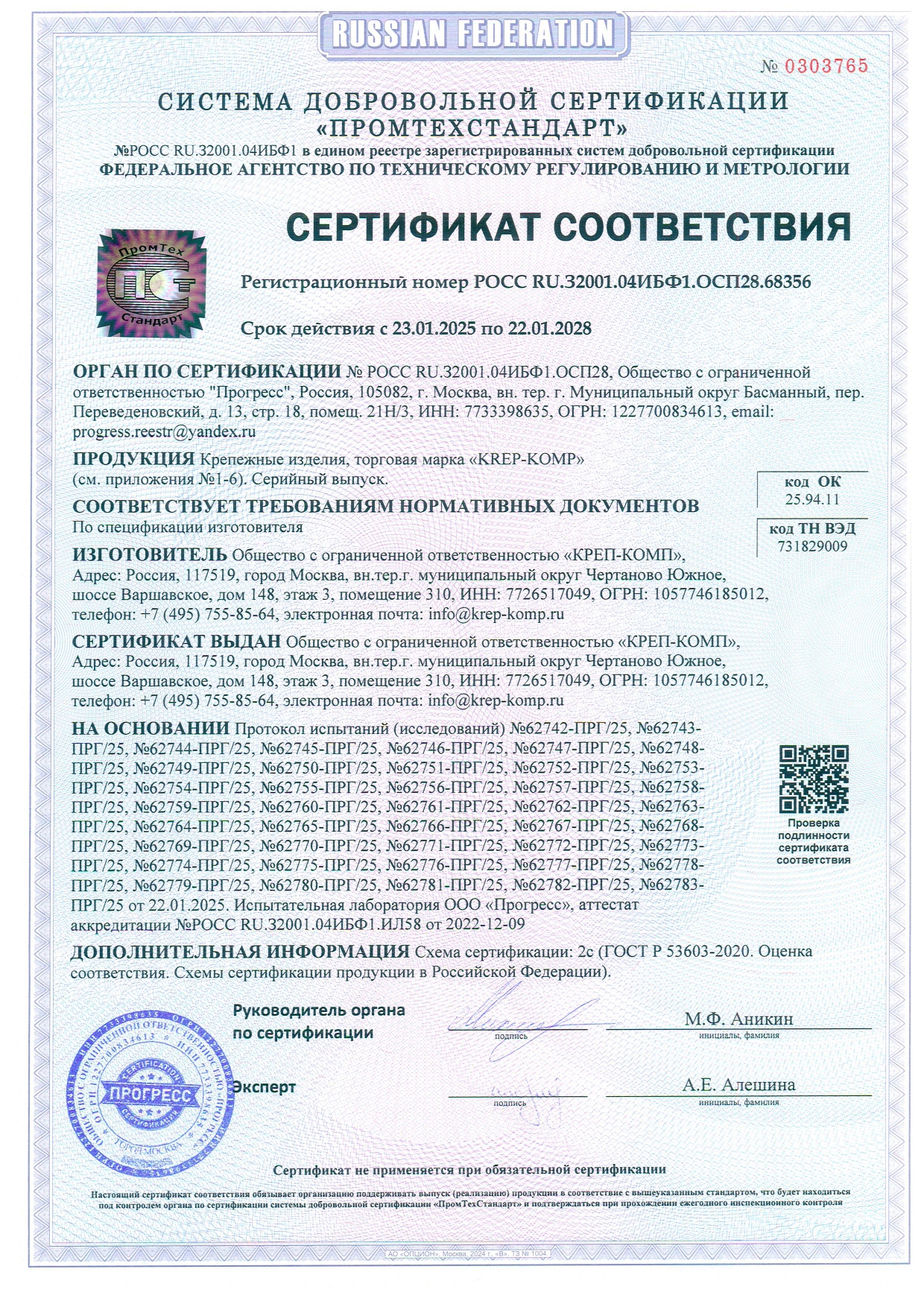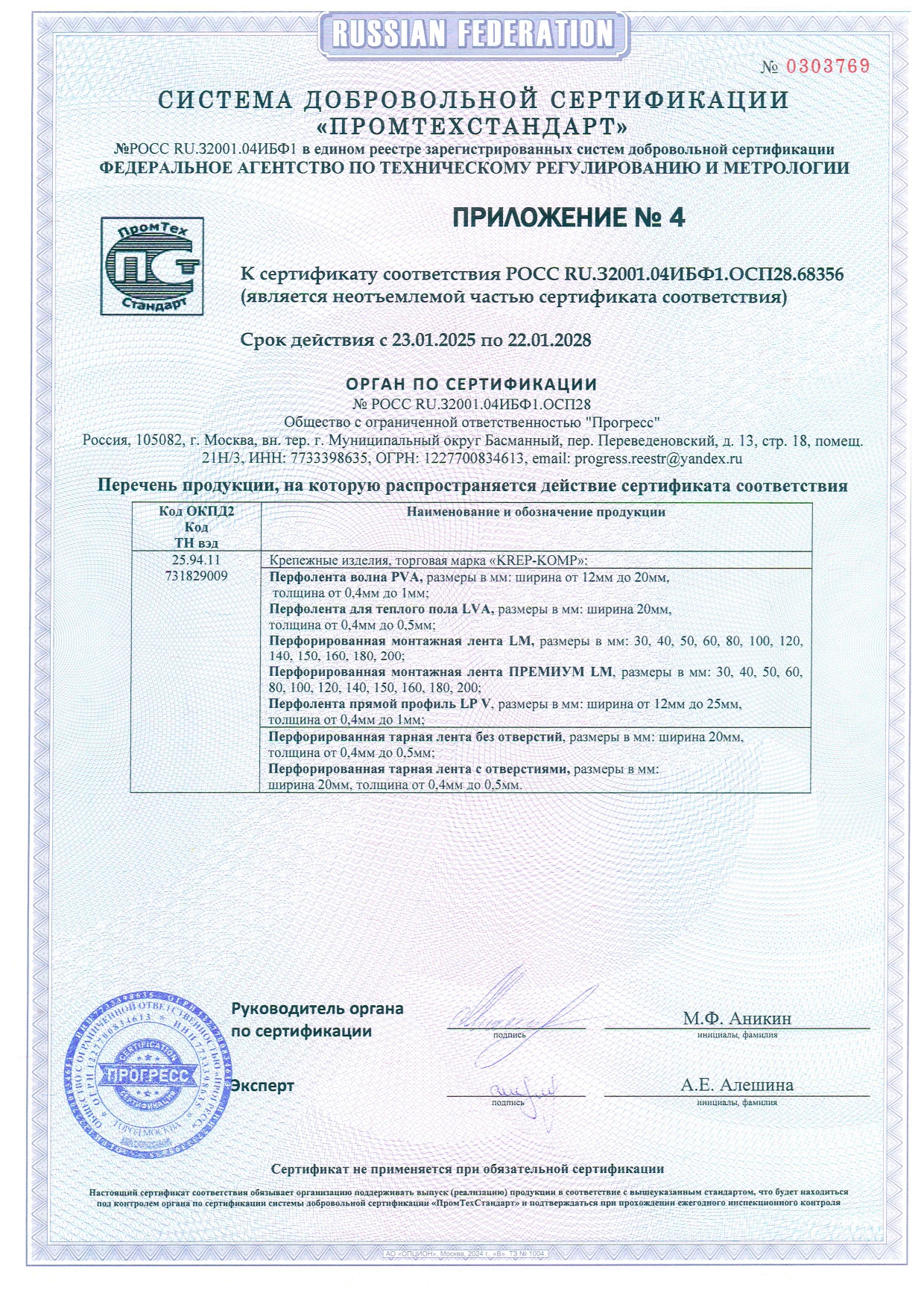 • Скачать Сертификат перфорации